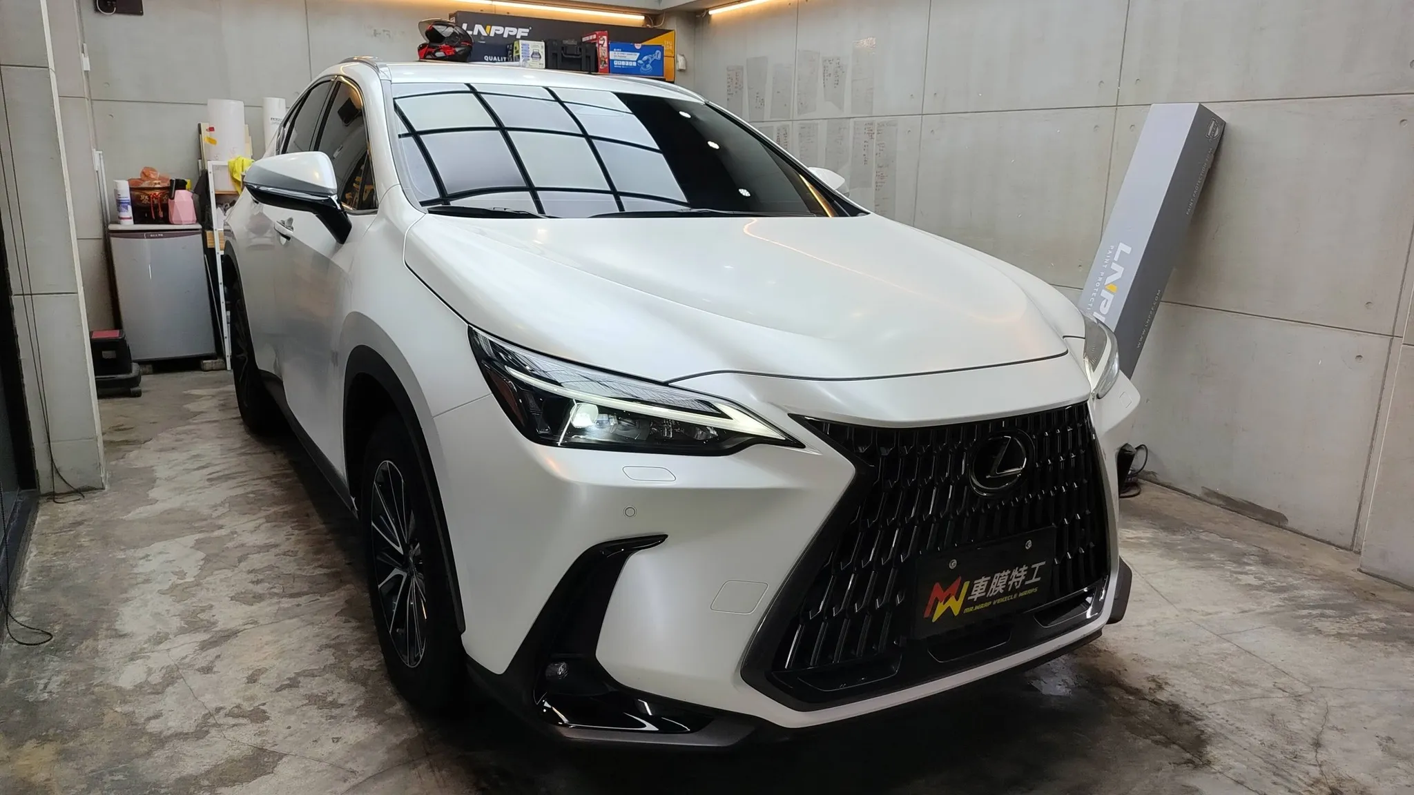 車主在春節初二來訊問我包犀牛皮相關問題,初三來店了解膜料,並預約馬年開市第一輛進場施工,這真是我最好的生日禮物!車主春節前夕購入這輛2年車齡的LEXUS NX200 ,前車主漆面有鍍膜,照顧得不錯,是值得包犀牛皮繼續維護的!白色NX搭配上消光犀牛皮,質感更加提升!完工交車時看到車主的眼神,藏不住的笑意,就知道他又更愛這輛車了!